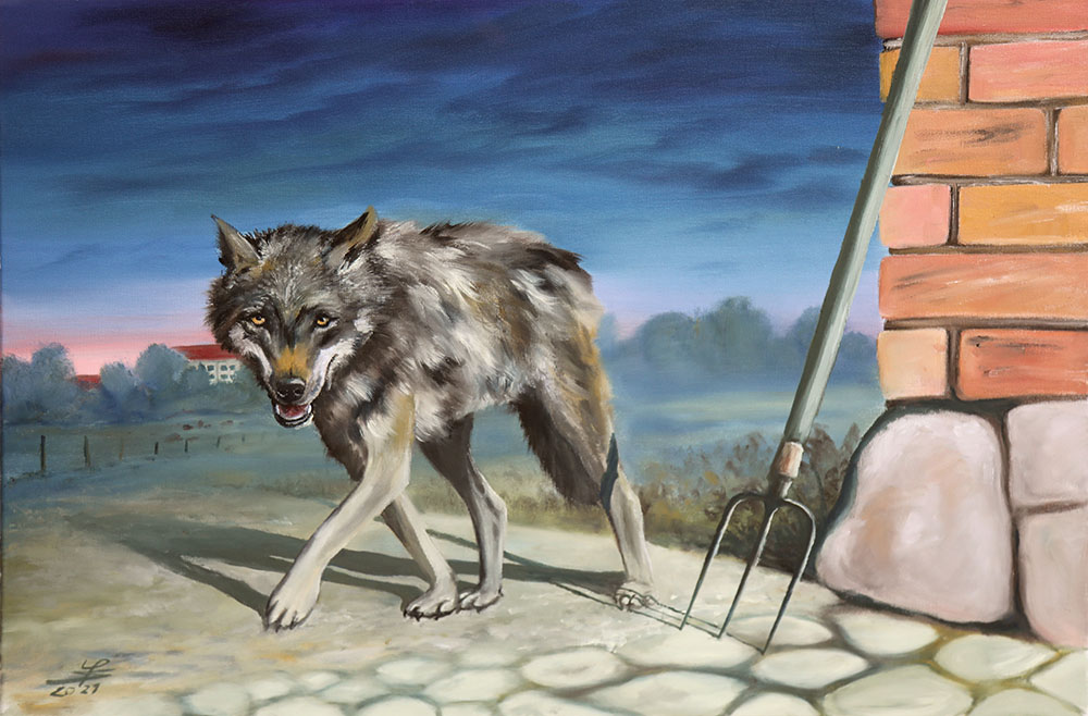 Wolf vor Stall